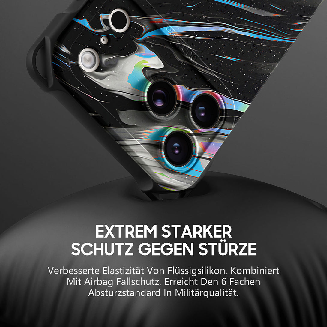 Wir Fertigen Mit Fortschrittlicher Technologie Und Maschinen. Die Schichten Werden Kombiniert, Um Den Endgültigen Körper Aus Flüssigem Silikon Zu Bilden. Und Tausende Teststunden Fließen In Den Design Und Herstellungsprozess. Es Sieht Also Nicht Nur Toll Aus, Sondern Schützt Ihr Iphone Auch Vor Kratzern Und Stürzen.